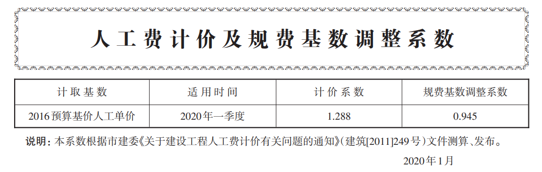 人工費(fèi)計(jì)價(jià)及規(guī)費(fèi)基數(shù)調(diào)整系數(shù)(2020年一季度)